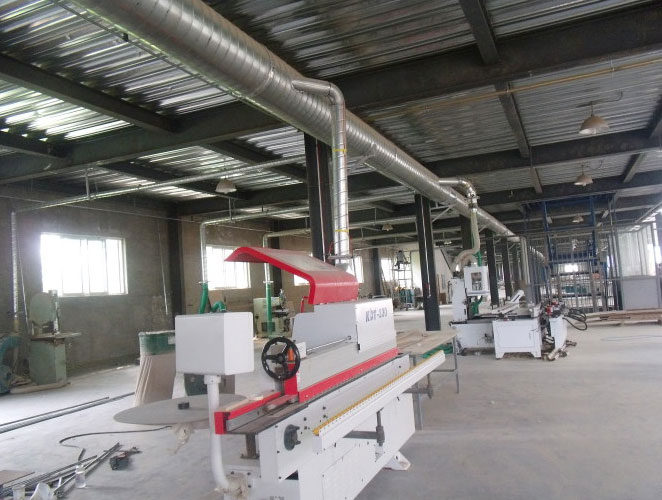 家具廠木屑粉塵收集措施:在每臺加工機械塵源上方或側向安裝吸塵罩,通過風機作用,將粉塵吸入輸送管道,再送到蓄料倉內,可達到各作業(yè)點的粉塵濃度降至2mg/m3。除塵效率在95%~99%以上。