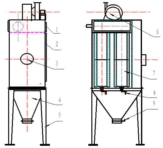 濾筒除塵器是一種比較先進的過濾設(shè)備,優(yōu)點是除塵效率高,設(shè)備體積小,過濾面積大,過濾風(fēng)速低,噪音低等多種優(yōu)點.被過濾粉塵僅停留在濾料超細纖維層的外表,所以大大減少了過濾阻力,節(jié)省耗電30%以上,節(jié)能效果顯著,并且清灰十分徹底.同時也解決了超細粉塵,纖維性粉