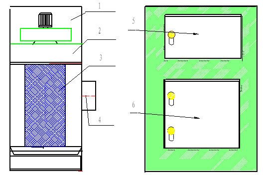 本設(shè)備采用聚脂纖維濾芯過濾的方法,每個濾芯的過濾面積10-15㎡,根據(jù)處理風(fēng)量的需要可以增加濾芯的數(shù)量,濾芯的拆裝維修不需要工具,濾芯使用周期為1年--2年。