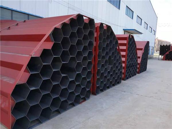 ?。?)蜂窩式電捕焦油器。蜂窩式與管式的結(jié)構(gòu)相同,是將通道截面由圓形改為正六邊形。兩個(gè)相鄰正六邊形共用一條邊,即靠中間的正六邊形的六條邊均被包圍它的六個(gè)正六邊形所共用。用2~3mm的鋼板制成的蜂窩板即可滿足工藝和機(jī)械強(qiáng)度的要求。由于蜂窩式電捕焦油器具有結(jié)構(gòu)緊湊合理、沒有電場(chǎng)空穴、有效空間利用率高、重量輕、耗鋼材少和捕集特性好等優(yōu)點(diǎn),但存在制造難度大,在運(yùn)輸安裝過程中易產(chǎn)生誤差等缺點(diǎn)。隨著設(shè)備制造工藝水平的提高,蜂窩式電捕焦油器的優(yōu)點(diǎn)會(huì)越來越受到人們的重視,必將逐步取代同心圓式和管式電捕焦油器。鈺泰環(huán)保生產(chǎn)蜂窩式電捕焦油器