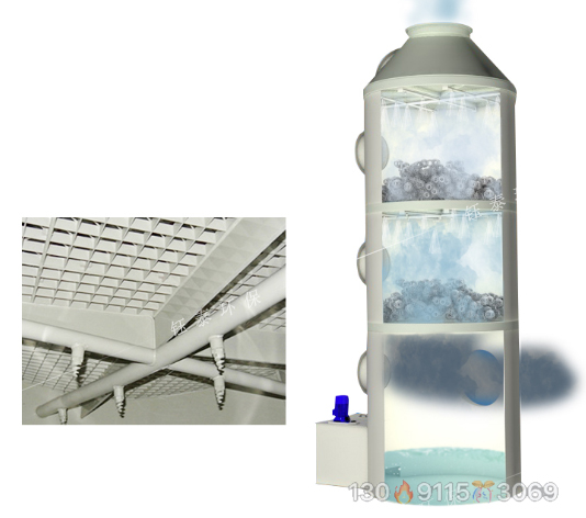 廢氣噴淋凈化塔的工作原理是將氣體中的污染物分離成無害物質(zhì),以達到凈化氣體的目的,屬于差動接觸逆流,塔體填料是氣液接觸的基本組成部分。進入塔體的氣體進入塔體后,氣體進入填料層,填充層有頂部的噴淋液和前面的噴淋液,并在填料上形成一層液膜。當氣體流過間隙時,它與填充物接觸液膜并進行吸收或中和反應(yīng)。填充層可以提供足夠大的表面積。氣體的流動,并不會造成太大的阻力,氣體吸收或中和后被除霧器收集,從塔外的出風口排出。