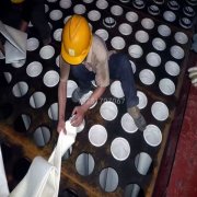 近日,我公司接到山西太水泥廠窯尾除塵器更換除塵布袋項(xiàng)目,此次更換的布袋為高溫覆膜氟美斯布袋,在布袋的安裝過程中要注意布袋的保護(hù),不可為趕緊工期不按要求安裝,防止覆膜在安裝過程中損壞。安裝完畢后要進(jìn)入除塵器底部觀察布袋的底部是否充實(shí),防止漏裝袋籠的下半 -